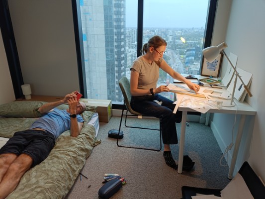 Last year Zali and Jett were both at Melbourne Uni and living in our shared Melbourne Apartment. While this worked in the most part (and was by far the most cost effective option for us), it was a bit of a hassle for everyone. If someone came to stay, the kids had to move into a room together, and no-one got the place to themselves. We did once move them out into an airbnb for a week so both bedrooms could be used by the other owners, but that was also a bit of a hassle as they had to almost completely move out and get the place back up to airbnb standard. So this year we planned to move the kids out into their own apartment. We had budgetted quite a lot to find something nearby and furnished, but after a tough weekend of inspecting and applying we discovered that only wanting a 9 month lease (as the kids would come home over summer), and not having any recent rental history, made us undesirable tennants. And in a situation where there was a lot of competition at every livable place, we realised we weren't going to find anywhere. However just as we steeled ourselves to breaking it to Paul and Dani that we would have to have the kids stay in our apartment again, Zali and I did a tour of the fancy new build-to-rent building which was just opening up just a 5 minute walk away. We were totally blown away by the facilities and apartments, the ony problem was the extra $75 above budget and unfurnished status (although it had all appliances). The upside was that this building had apartments available and they were willing to rent to us, despite the short lease and lack of rental history. So after working out that we could balance out the cost by reducing the total lease time (and move the kids back to our apartment before the end of the school year), we decided to apply and sure enough, they accepted us. Yay! So this weekend we got the keys to the new place and to a GoGet van, and set about rounding up furniture from everywhere. .jpg)