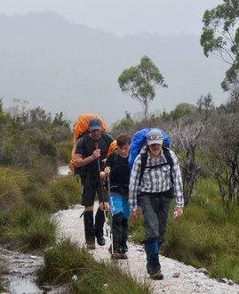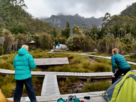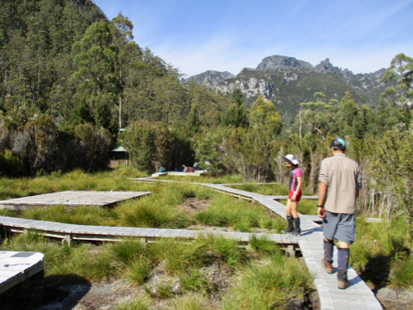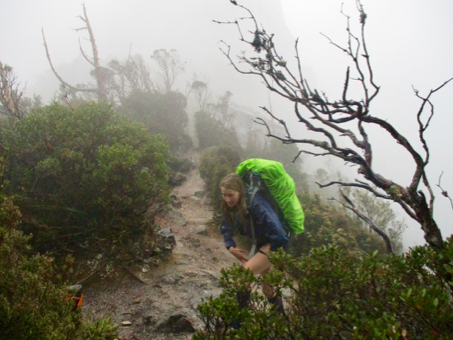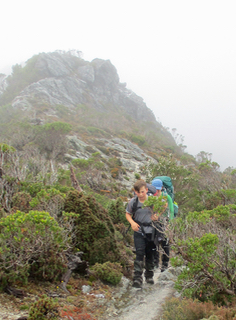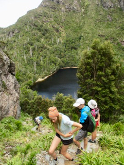 "I should never have come on this walk' said Leo, Clare's 12 year old nephew, as he looked at the staircase stretching up in front of him. "Nor should I", replied Clare, Tour Leader, leaning heavily against a pencil pine which was as dead as her enthusiasm for hiking. "Whose stupid idea was this anyway?", I thought to myself as my boot sunk into foot deep mud, although as the tour instigator, I knew the answer to that question already. It was day 2 and we'd been hiking for almost 4 hours, which included conquering the utterly relentless climb up to Barron Pass. From there we'd expected to cruise our way down to our next stop at Lake Tahune - a mere 3k from the Pass, but after a further 2 hours of heartbreakingly steep ascending and descending along an impossibly rugged ridgeline, it was still nowhere in sight. In fact it was impossible to imagine that there could even be a lake in the area - the track we were following looked like it was more likely to lead us straight over a 400m cliff, rather than to a lake - although the idea of ending our suffering in such a swift and humane manner was becoming more appealing by the step.