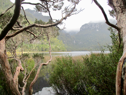 Why the track was such slow going!   We carefully descended to Lake Vera and made it to the hut by about 1.30. We had already decided to continue on to a camping site by the Lodden River that we had passed on the first day - which would mean we’d just have a 5k walk on the last day. So after a leisurely lunch at Vera hut we saddled up and continued on, with the weather progressively clearing along the way. We reached the swing bridge at Lodden River by about 5pm.