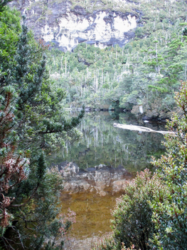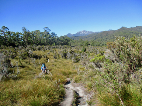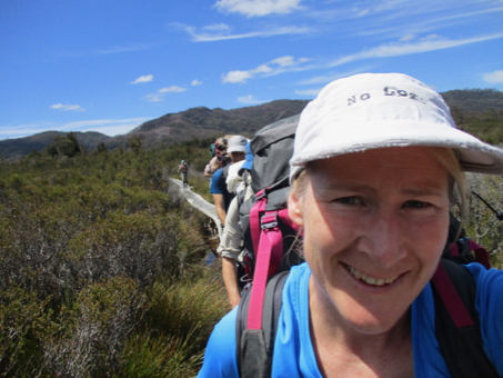 I think you’ll agree that it looks a) a long way away and b) formidable. Luckily you normally don’t get a view of Frenchman's Cap until you are at least an hour into the 3-5 day hike (you're fully committed in other words) - and in fact we didn’t get it at all as the clouds were pretty low, otherwise I might have found a reason to return to the car. As it was, Day 1 was pretty straightforward (if you discounted the general discomfort of walking with heavy packs). We left at around 11am and had a 14k trek to Lake Vera, where there was a hut and camping platforms. The trail has been hugely upgraded by Dick Smith (thanks Dick), as apparently he walked it in 2008 and was so dismayed by the state of the track (in particularly the thigh high mud in the section called the ‘Sodden Loddens’), that he has contributed almost a million bucks to re-route it, so sections of the first day were now as smooth as the pipeline track. Yay.