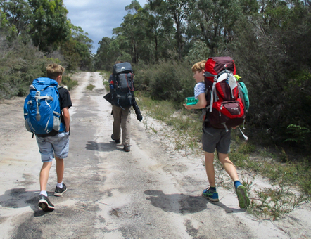 Sending the kids off unsupervised was something Jon and I had taken seriously. So back in October I ran the proposed route and visited the campground to make sure there was mobile phone reception and access to water. I also checked the vehicle access and I found a place for Jon and I to stay that was just a 20 minute drive away. At home we got the kids to set up & pack up the tents & equipment, and I taught Zali and Miley how to use the cooking stove, then supervised them using it safely to cook noodles and make hot chocolates. We'd gone through basic first aid and snake bite treatments, and what to do in case of emergency. Of course, even with their experience and the training I didn't think they'd have a mistake free trip. In fact I was kind of hoping they'd make some small mistakes they could learn from - like leaving food out for the possums, or leaving their clothes out in the rain - things we would no longer have to nag them about when we hiked together! Unfortunately the lesson they learnt was a much bigger one. More on that later. Here they are at the start of the hike.