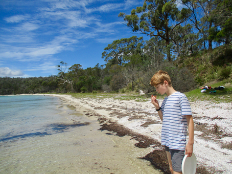 Arriving at the campsite by the beach they were shocked to discover they were supposed to pay for camping. When I visited I hadn't noticed this at all - thinking back it's because I ran in along the tracks, not along the road which has all the signs. After a flurry of text messages I managed to convince them that no-one would kick them out (there wasn't an on-site ranger anyway) and that they didn't need to worry. From Zali's photos it looks like they spent a lovely afternoon playing by the beach. It's a super-safe beach as you'd have to walk about 500m out to sea before you got deeper than your waist!