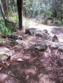 The route is all single trail as it winds along beside the lake with a few steep rocky step sections along the way. I was absolutely determined to run these steps as a way of convincing myself that I wasn't completely stuffed - cos if I thought I was buggered, I'd have all sorts of excuses to walk later on and that was NOT going to happen - so I huffed and puffed up those steps, overtaking someone along the way (by this time there weren't all that many people around me - most of the teams were almost finished, so to go past someone was a bit of a treat).