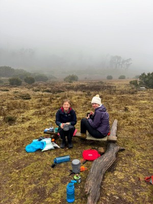 After a much warmer evening the rain we had been expecting earlier in the day finally arrived that night and continued through the morning, transforming the landscape again. We hit a break in the showers as we had breakfast and packed up which was lucky (although Belinda had gotten a bit drenched in a heavy downpour earlier in the morning hence her slightly sodden look below). .jpg)