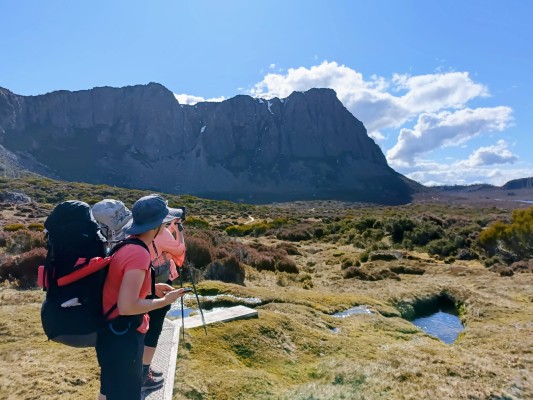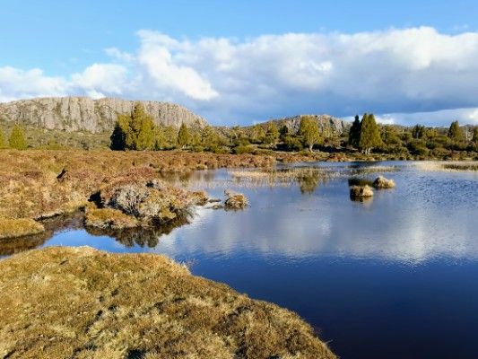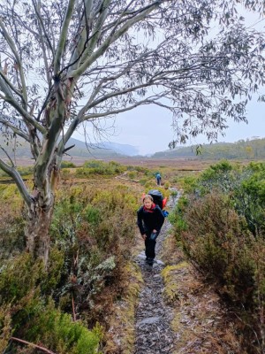 It must have been the early 2000s or maybe even late 1990s when I last hiked into Walls of Jerusalem National Park after a frisbee tournament in Hobart. Our group walked in under heavy clouds and walked right out again through the snow the next morning. The forecast wasn't much better for this trip but as Julie and Belinda had flown down from the mainland and Jo and I had also organised some days off we figured it would be worth the try anyway - in a best case scenario we would be able to get at least 1 and a half days of good weather before the rain closed in. It's a long drive to the trailhead which probably accounts for why I haven't been there since we returned to Tasmania. Nowadays you have to register to avoid overcrowding - but it was still a surprise to arrive at about 1pm to see a jam packed car park. Like the overland track, the first part of the walk is the most grueling as it relentlessly climbs up to the plateau. Unlike the Overland Track though, it's all over within about 90 minutes and then were able to breathe a bit easier as we walked through beautiful alpine terrain admiring the snowcapped mountains in the distance.  1.jpg) .jpg)