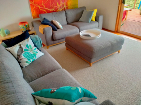 for a less shaggy and hopefully easier to clean version. It's a bit more boring colour wise, but it does allow the artwork on the wall to shine even more.