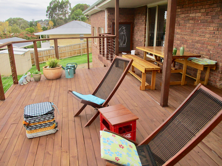 Last summer I spent a lot of time cleaning and restaining our deck and generally making it look a lot better. I think you'll agree that it looks quite nice now: