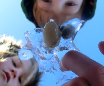 Oh - and the weather was clear and cold - no sign of rain, but the MTB course had changed due to the rain they'd had during the week - the first half of each loop was no longer on the cool new technical trails I'd trained on, but instead on fire trails which basically went steeply down, then back up in stages. Oh well. Here's a cool photo Zali took of her and Jett examining a piece of ice with a pebble stuck in it that they picked up from the side of the lake..