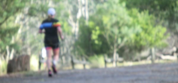 After the huff and puff of the steps I settled into a steady pace and let the kilometres roll on by. All the time I expected Jenny to come past but while a few people did, none of them were her. At the turning point I got a bit of a look back along the trail but I couldn't see anyone and I didn't want to linger as I knew if she so much as got a sniff of me her determination alone would zoom her straight past.
