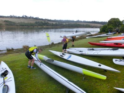 Nethertheless, apologies accepted, at 10:15am we were on the road. We arrived at 10:30, nosing past the throng assembled for the briefing and with some help from Ian my paddling buddy started getting my gear sorted. We really just had time to put my stuff in the transition zone and put the boat on the water - no time to be nervous but just time for a photo before the start!